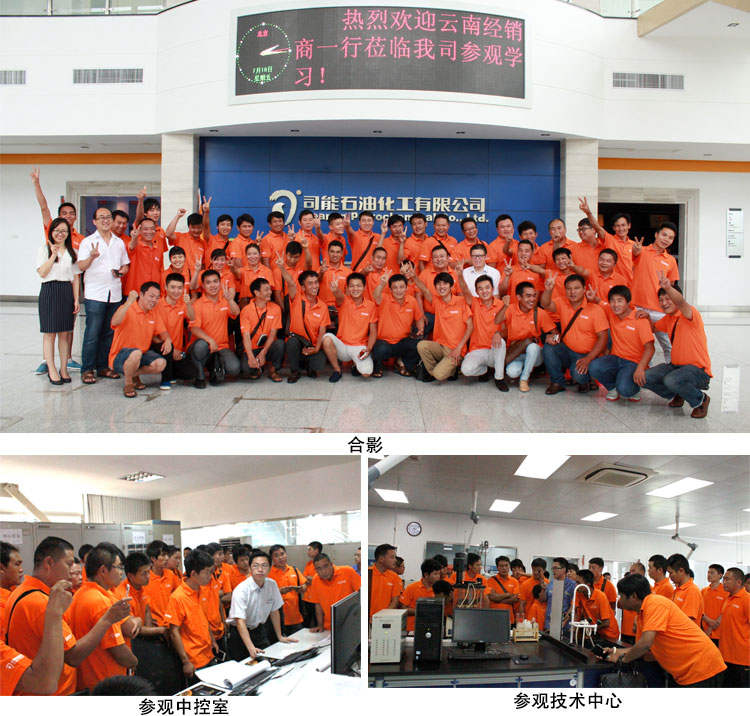 ? ? ? ? 經(jīng)過(guò)前期的精心組織和安排,昆明經(jīng)銷(xiāo)商團(tuán)隊(duì)一行42人于2015年7月10日-7月11日蒞臨司能石油化工有限公司進(jìn)行了參觀和培訓(xùn),司能石化營(yíng)銷(xiāo)公司副總經(jīng)理潘健康先生以及相關(guān)人員予以熱情地接待。從昆明到柳州,經(jīng)歷了一天一夜旅途奔波的客人們,雖然辛苦,但是他們?nèi)耘f興致勃勃參觀了司能的企業(yè)展廳,技術(shù)中心,調(diào)和廠,中控室以及自動(dòng)分裝線等重點(diǎn)區(qū)域,更加直觀地了解了司能的柳州廠區(qū)廠貌,對(duì)司能潤(rùn)滑油的整個(gè)生產(chǎn)過(guò)程也有了更為清晰的認(rèn)識(shí)。除此之外,司能石化技術(shù)中心為來(lái)賓們進(jìn)行了為期一天的專(zhuān)業(yè)的潤(rùn)滑油知識(shí)培訓(xùn)。