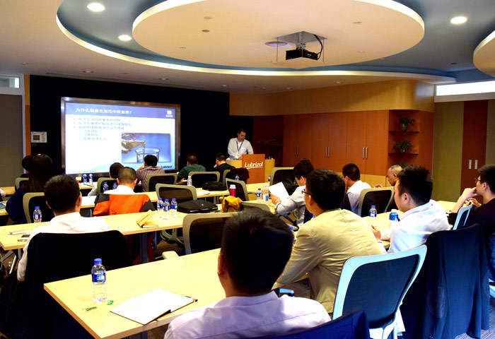 ? ? ? ?為期3天的培訓(xùn)課程。路博潤(rùn)從概念到案例,帶領(lǐng)司能學(xué)員深層次探索潤(rùn)滑油的世界。培訓(xùn)內(nèi)容主題廣泛,除了潤(rùn)滑油原理、添加劑規(guī)范外,還包括硬件應(yīng)用,從汽車(chē)或工業(yè)設(shè)備設(shè)計(jì)入手,介紹其相應(yīng)的潤(rùn)滑要求以及相關(guān)嚴(yán)格的測(cè)試試驗(yàn)等,如發(fā)動(dòng)機(jī)、傳動(dòng)系統(tǒng)、非公路機(jī)械等。培訓(xùn)材料結(jié)合了大量視頻和動(dòng)畫(huà)演示技術(shù)概念,穿插分組游戲,提供真實(shí)應(yīng)用部件的展示,這些使得培訓(xùn)過(guò)程富有趣味性和參與性。