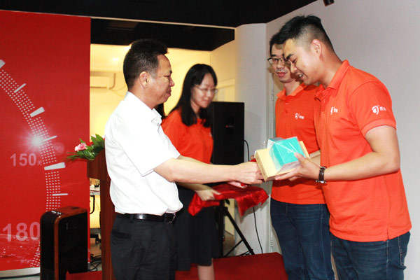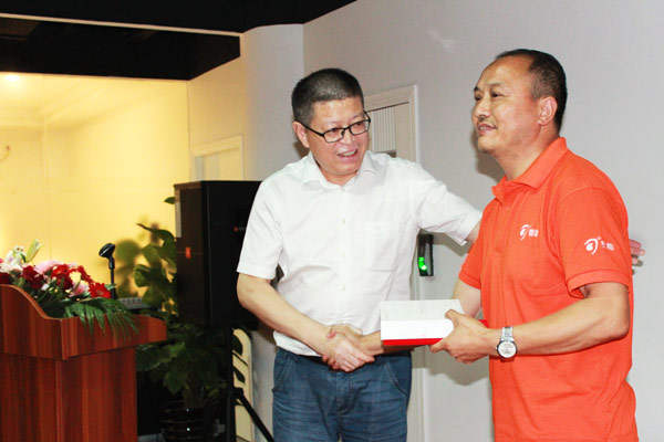 △營銷公司副總經(jīng)理潘健康為渠道優(yōu)質(zhì)客戶開發(fā)能手頒獎。
