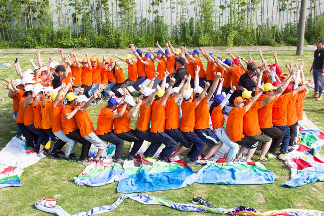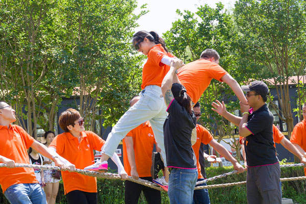 擰成一股繩,我們的力量足以支撐4個人的體重在繩上行走,在繩上行走的伙伴正象征著我們的領(lǐng)導(dǎo)層,他們需要相信伙伴們的力量,而底下伙伴的支持才是成功的關(guān)鍵!